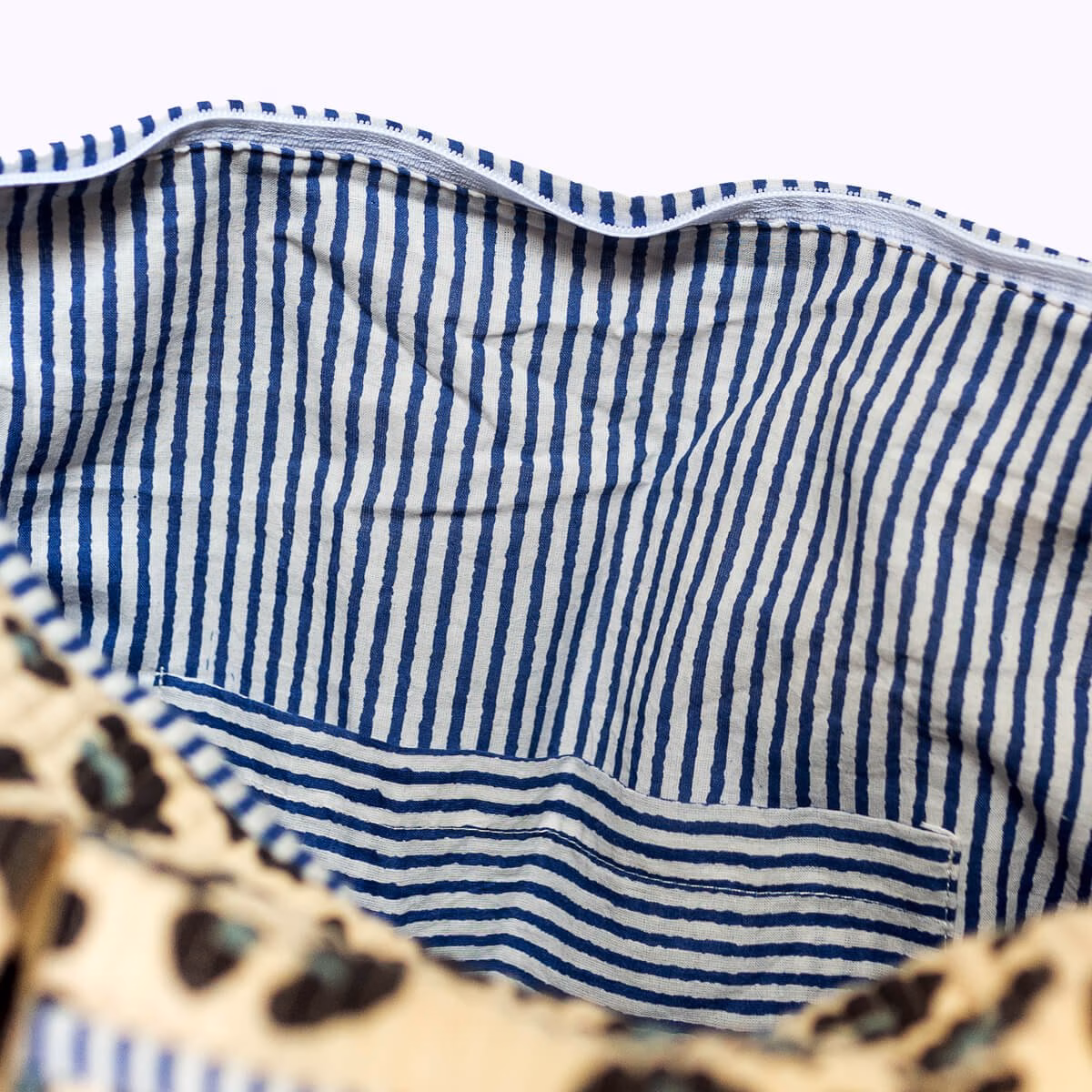 Elk exemplaar is uniek – dus geen kopiërende strandgast met exact dezelfde tas. Dat wil je. Kortom: deze katoenen tas blauwe Leo mag gewoon niet ontbreken in jouw collectie. Hop, je winkelmandje in!